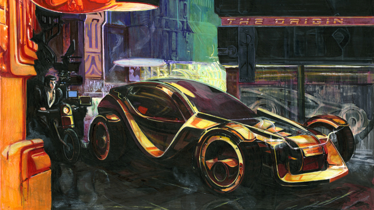 Whilst sculpting the clay, we listened to a lot of Vangelis, and Blade Runner (again, with its relation to the creation of life) became a bit of a theme/in-joke. “Do you like our owl?” would become our standard enquiry to each other and bemused visitors. I decided to surprise the team by presenting the final artwork in the style of Syd Mead’s Blade Runner concept art. Of course, with my underlying interest in film and production design, it was a great excuse to do some concept art. The piece is an illustration with an alcohol marker base, then Karisma crayon, further marker ink, and white paint.